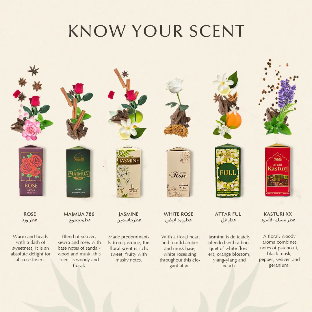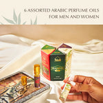 Discover the beauty of floral scents with this travel-friendly 6-bottle attar set (6ml each). Crafted for lovers of soft, elegant perfumes, each alcohol-free roll-on offers long-lasting fragrance for 14+ hours. Compact, luxurious, and beautifully curated, this set makes a thoughtful gift for Eid, anniversaries, or any special occasion.