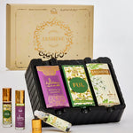 This 3-piece attar set features three 6ml bottles of luxurious, alcohol-free perfume oils—Jasmine, Attar Ful, and Sandalia Jasmine. With its uplifting floral theme and elegant packaging, it makes a beautiful gift set for anyone who adores fresh, calming jasmine scents.