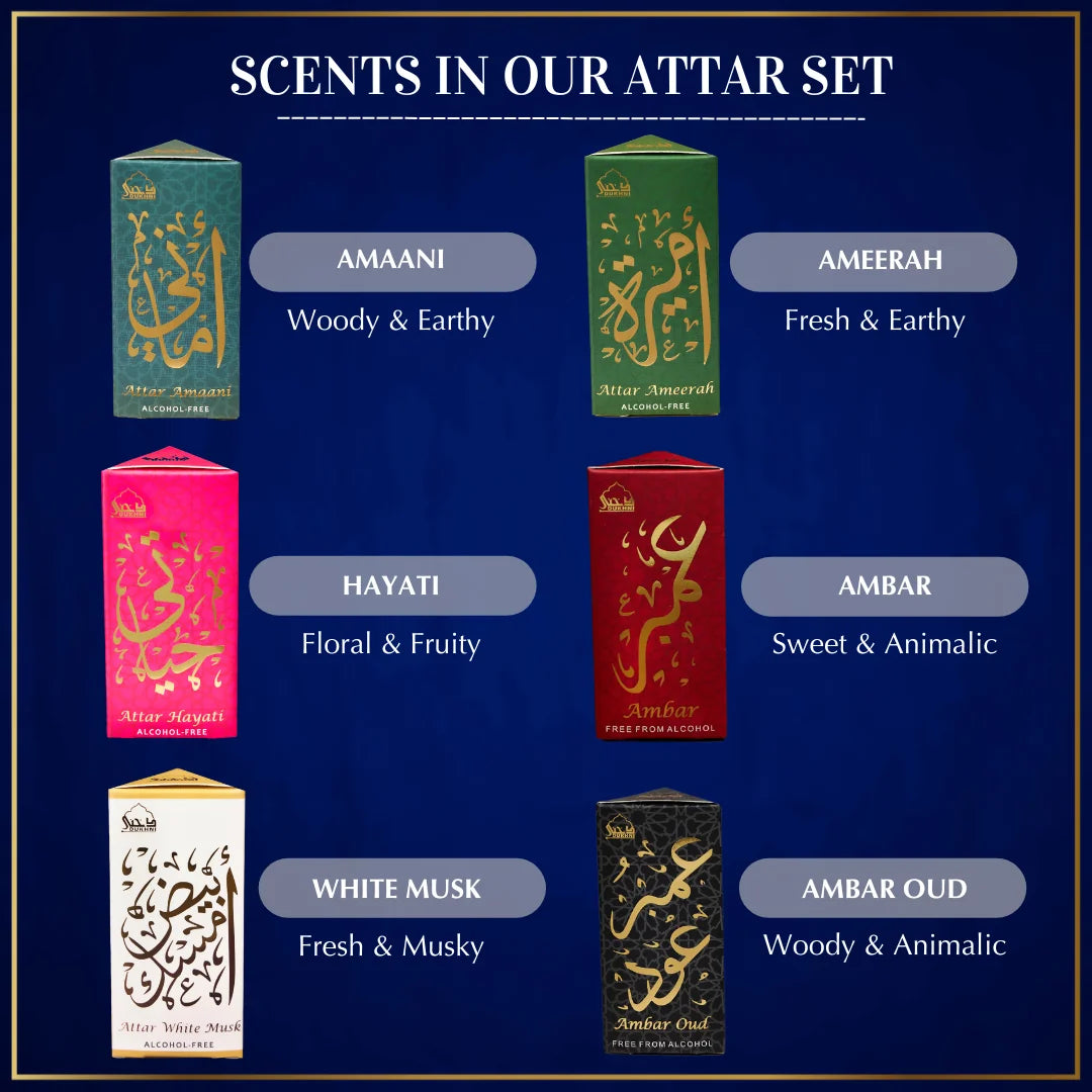 Attar Oils: Apply a small amount to pulse points, clothing, or carry for on-the-go fragrance.