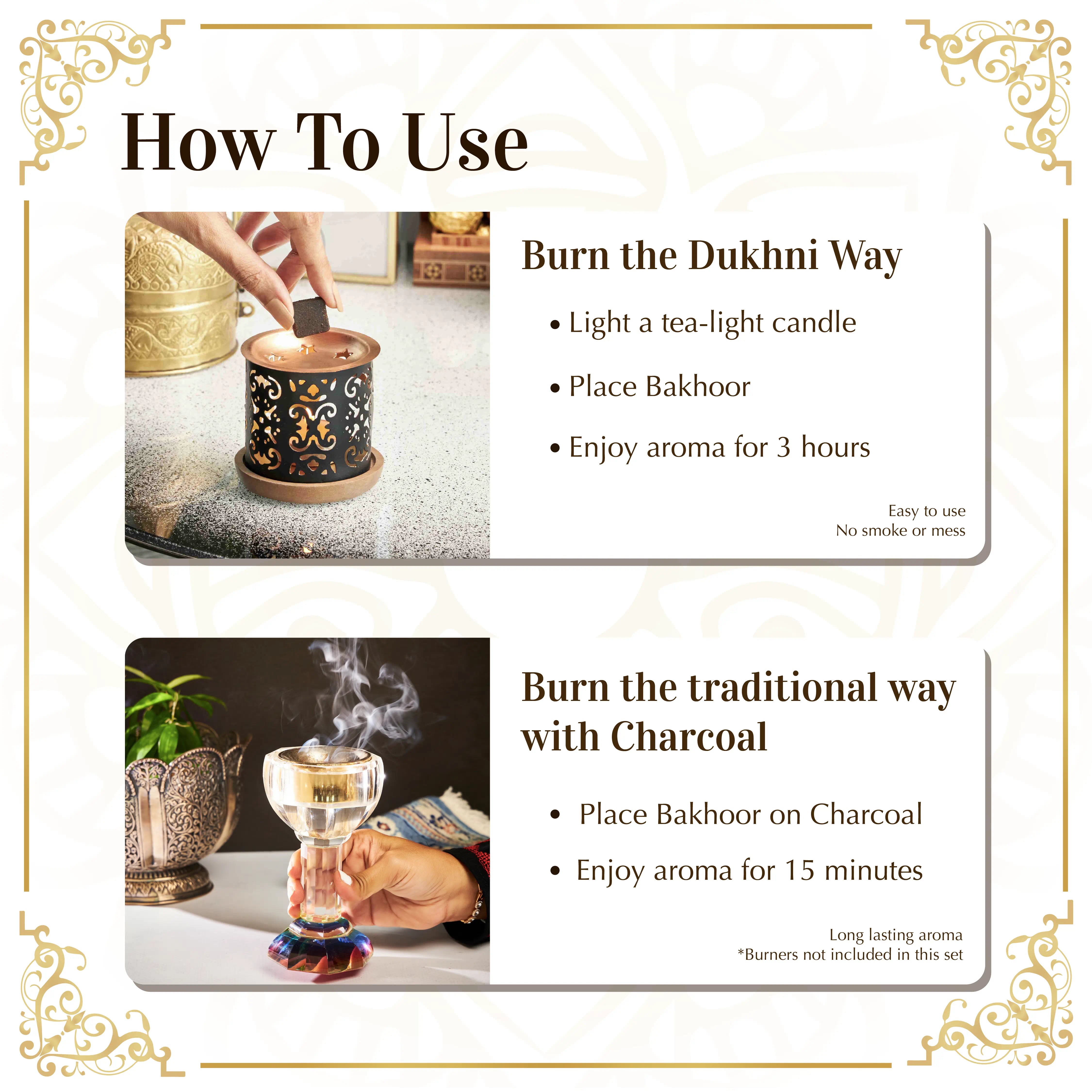 Enhance religious ceremonies, meditation practices, home ambiance, office spaces, or relaxation moments with authentic Dukhni bakhoor.