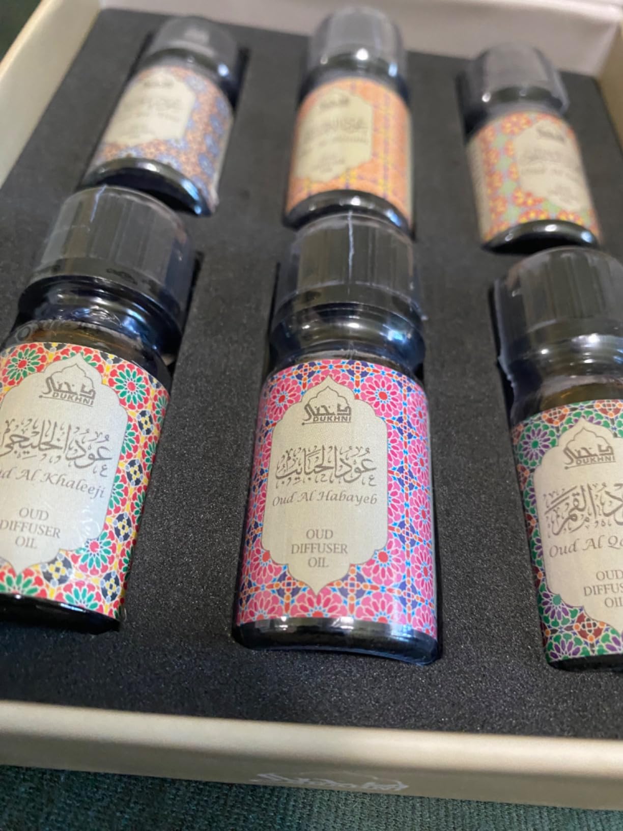 This gift pack of Oud diffuser oils makes a fabulous gift set for anyone that is a fan of these oud exotic scents.If you do not like the scent of rose, these may not be for you as it is present in 5 of the 6 oil diffuser bottles.It is a nice variety pack with each bottle containing 10ml of a fairly concentrated oil mixture...perfect for oil based infusers.