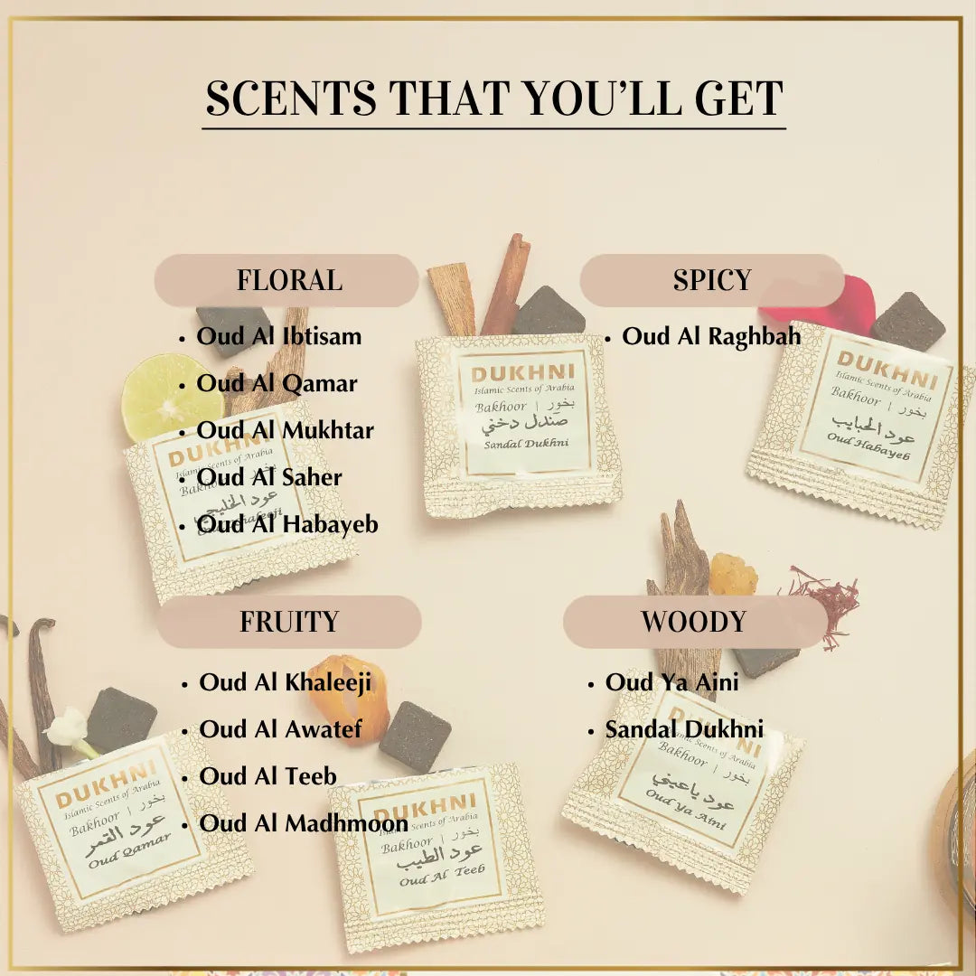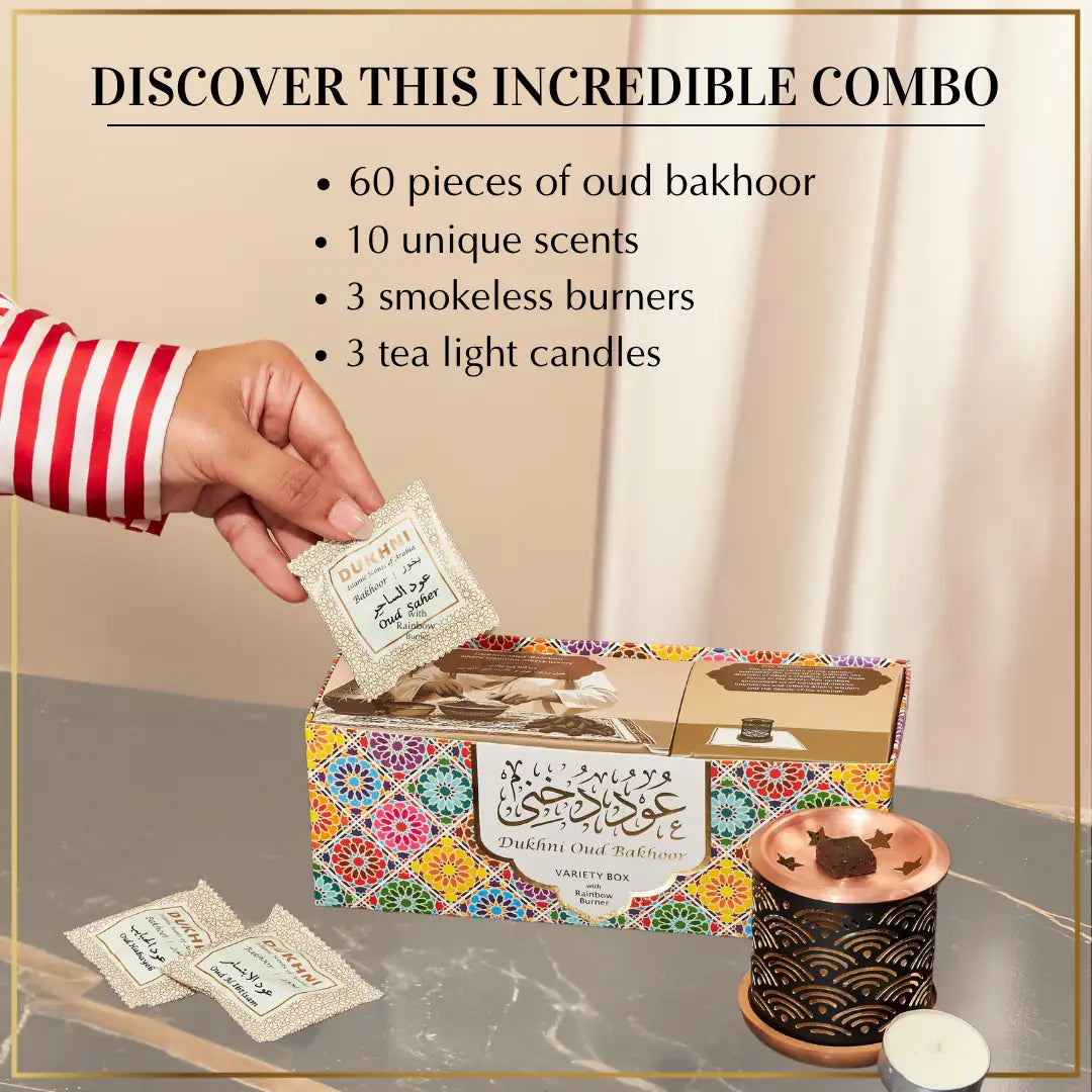 Together, the collection captures the essence of classic Arabian bakhoor, allowing you to choose a mood for every moment.