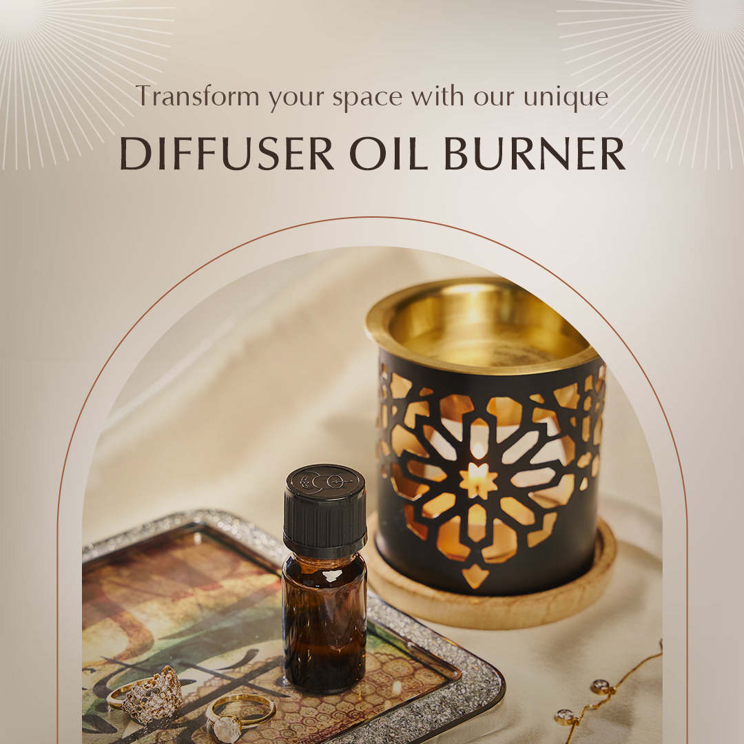 Fill your space with soothing scents using our diffuser oil burner—perfect for essential oils, aroma oils, and diffuser oils. Each set includes a wrought iron burner, a brass bowl, a wooden coaster, a tea light candle, and a free 10ml Oud Diffuser Oil worth $6.5. Beautifully crafted and easy to use, it brings effortless aromatherapy and elegant style to any corner of your home.
