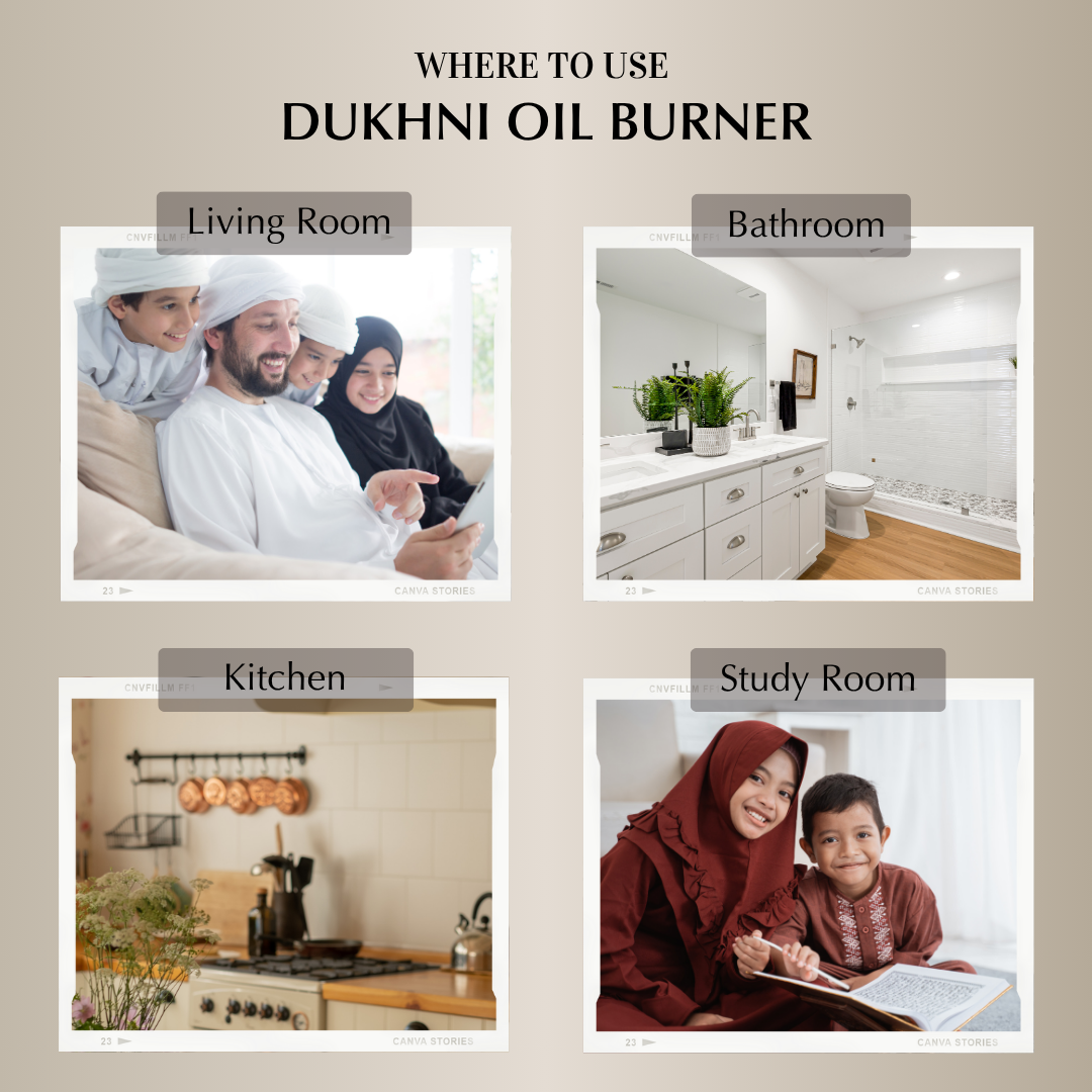 Every Dukhni burner comes with a complimentary 10ml Oud oil to get you started right away. Rich, warm, and authentically Arabian, this Oud blend diffuses beautifully through our burner, filling your home with a luxurious scent from the very first use. Whether you’re indulging in aromatherapy or creating a serene prayer atmosphere, the free Oud oil ensures you experience the magic of Dukhni fragrance instantly!